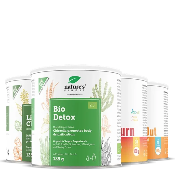 Zjutraj pripravite sveže iztisnjen pomarančni ali limonin sok, ga zmešajte z malo vode in dodajte 1 čajno žličko (5 g) zelene mešanice DETOX. To prebudi telo in spodbuja proces razstrupljanja.