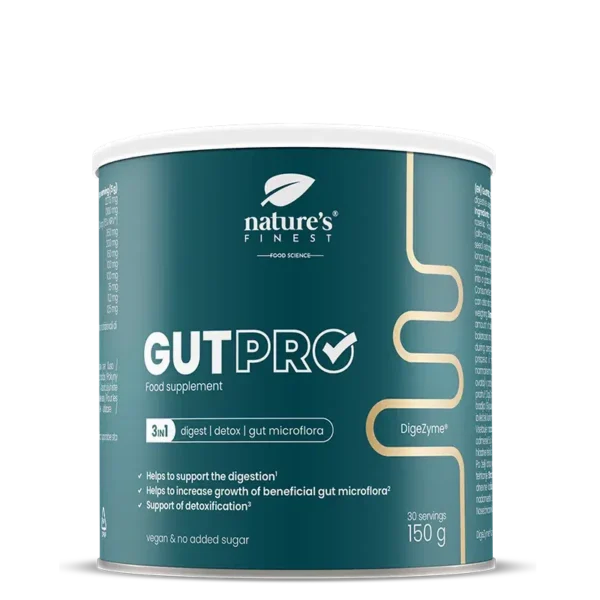 GutPRO je prehransko dopolnilo, ki združuje kompleks prebavnih encimov, rastlinskih izvlečkov in prebiotičnih vlaknin v eni sami formuli.