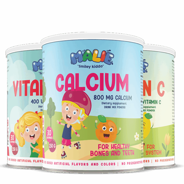 MALIE Kalcij ima odličen okus po svežih pomarančah. Malie VItamin C ima odličen okus po limonadi. MALIE Vitamin D ima odličen okus po sočni jagodi.