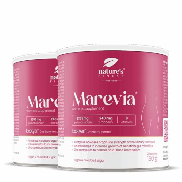 Marevia s pomočjo skrbno izbranih sestavin podpira ravnovesje⁶, sečila³ in črevesno mikrofloro⁴ pri ženskah.
