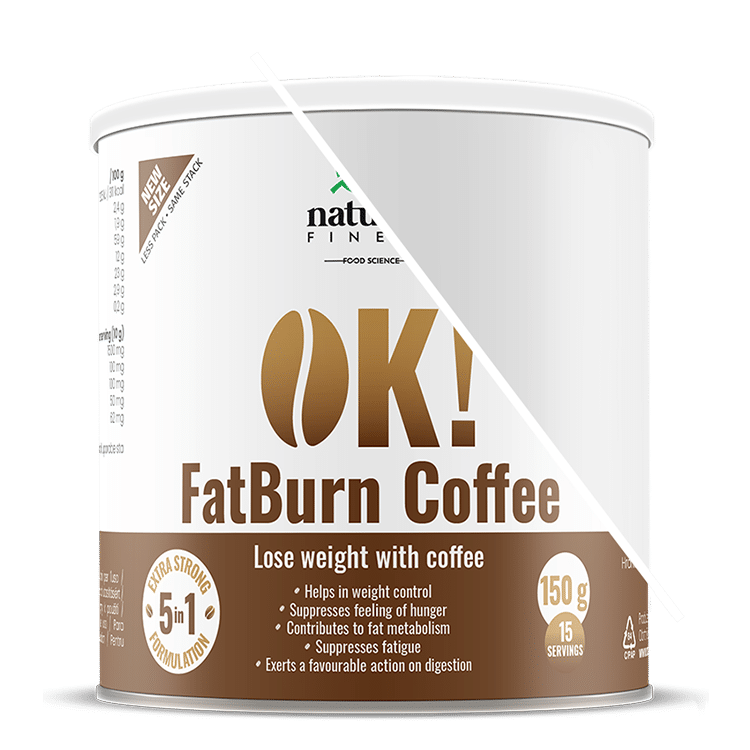 Zmešajte 10 g (1 jedilno žlico) mešanice OK!FatBurn Coffee v 150 ml tople vode ali (rastlinskega) mleka.