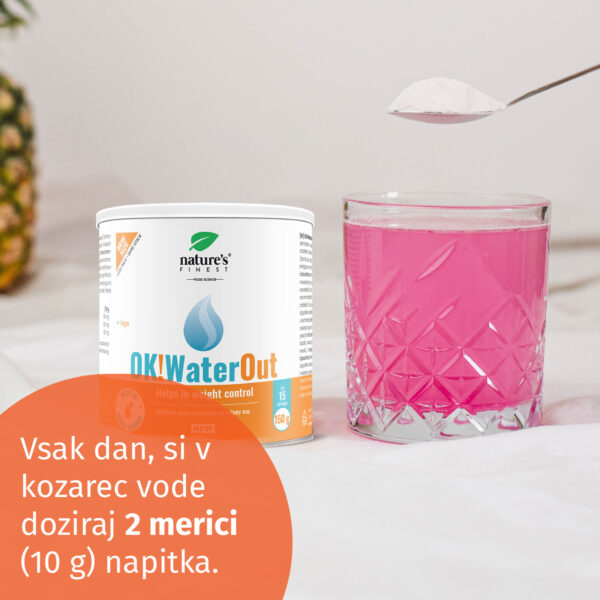 Vsak dan, si v kozarec vode doziraj 2 merici (10 g) OK!WaterOut napitka. Z eno merico boste zaužili 100 mg izvlečka koprive in 100 mg izvlečka bezga in 50 mg dresnika.