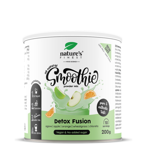 Dodajte 1,5 dl tekočine, kot je mleko, jogurt, sok, voda ali rastlinski napitek, dodajte polovico banane in 20 g (2 žlici) smoothie mešanice v prahu. Mešajte, dokler ne dobite gladke in enakomerne teksture. Za natančno odmerjanje priporočamo tehtanje.