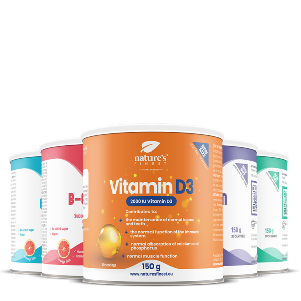 Dodajte 5 g vsakega izdelka (Vitamin C, Magnezij, Kalcij, B kompleks in Vitamin D3) v kozarec vode, dobro premešajte in popijte.